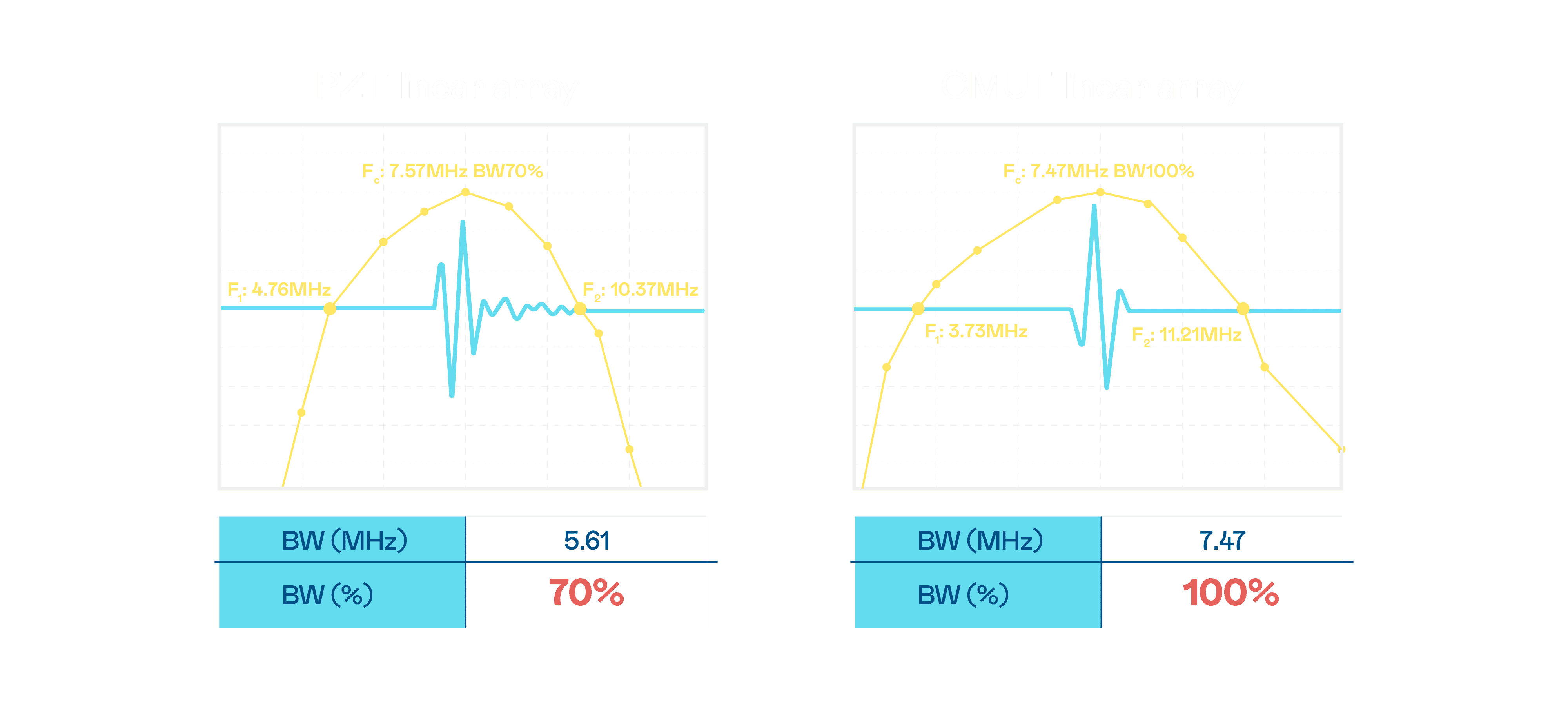 超音波影像的解析度高低,,,,首先取决于探头能发出的讯号频宽。。。至成国际 CMUT 可提供高清晰的超音波讯号,,提供高频宽、、、、高灵敏度、、、、影像纹理细节更高的超音波影像,,协助医护人员缩短影像判读时间及利用精准的医疗影像进行诊断。。。。