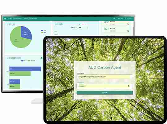 依循 ISO 国际标准建置出符合国际标准的全方位碳管理平台 (AUO Carbon Agent),,,,其中温室气体盘查模组可协助客户将组织、、产品与供应链的碳排放源数据,,透过系统内建的系数资料库自动计算出碳排量,,,,提升整体盘查作业的效率,,,并以此拟定长期减碳策略,,,,达到低碳转型、、、净零碳排的目标。。。。